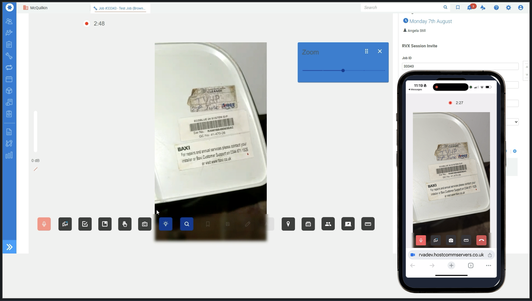 Hostcomm RVX remote visual assistance service can be embedded into your Simpro user interface using a plug-in, so that you can start an enhanced video session to any smartphone within seconds. Once the session connects you have live video, image capture, a live pointer, annotations, torch & zoom toggle and lot of other features. RVX lets you get more jobs completed remotely which means less travelling and faster responses to your customers.